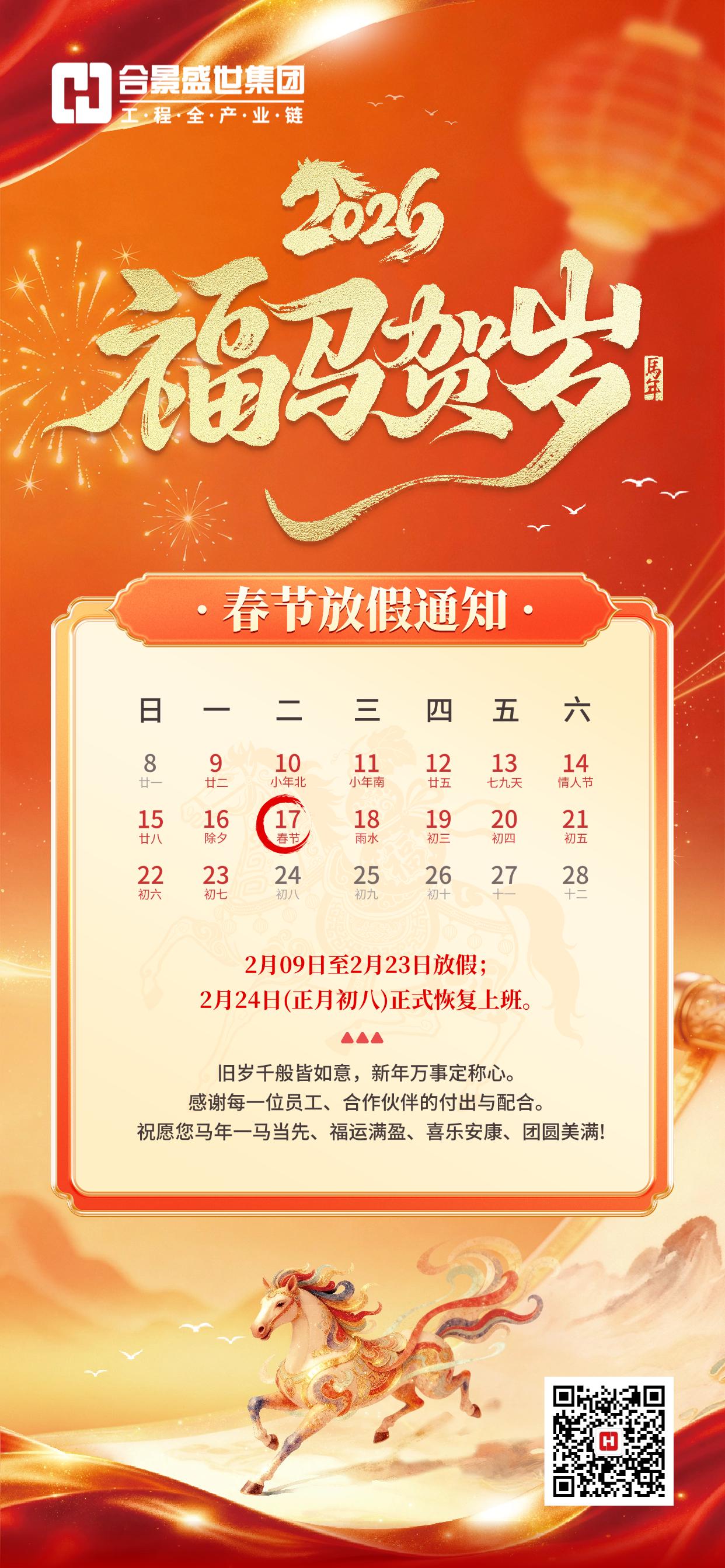 合景集团 | 2026年春节放假通知
